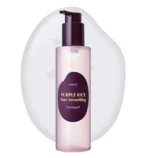 Cette huile sert à nettoyer les pores et à éliminer le maquillage tout en lissant le grain de peau grâce au riz violet.