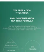 – Contient un complexe de feuilles et d’aiguilles d’arbres (eau de feuille d’arbre à thé, extrait de pin des marais et eau de cyprès) ainsi que de l’extrait de centella asiatica apaisant, pour restaurer tout le confort de la peau.