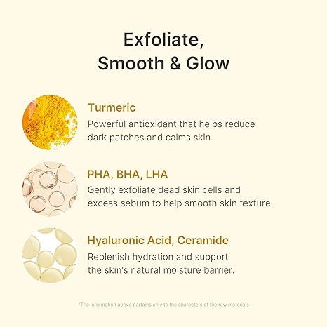 Bienfaits et avantages :- Cette ampoule exfoliante contient de l’acide kojique et du curcuma pour un soin exfoliant doux, clarifiant et illuminateur.